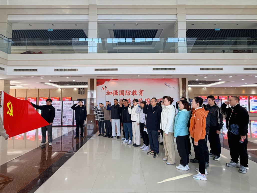 活动首站来到武汉野战国防园。在鲜红的党旗下,全体党员重温入党誓词,坚定初心使命。随后,大家步入国防教育馆,通过参观详实的史料与场景复原,系统学习了蔡甸革命史与军事发展历程。在室外重武器陈列区,党员们近距离观摩退役军事装备,深切感受我国国防力量的强大,进一步增强了国防安全意识与民族自豪感。