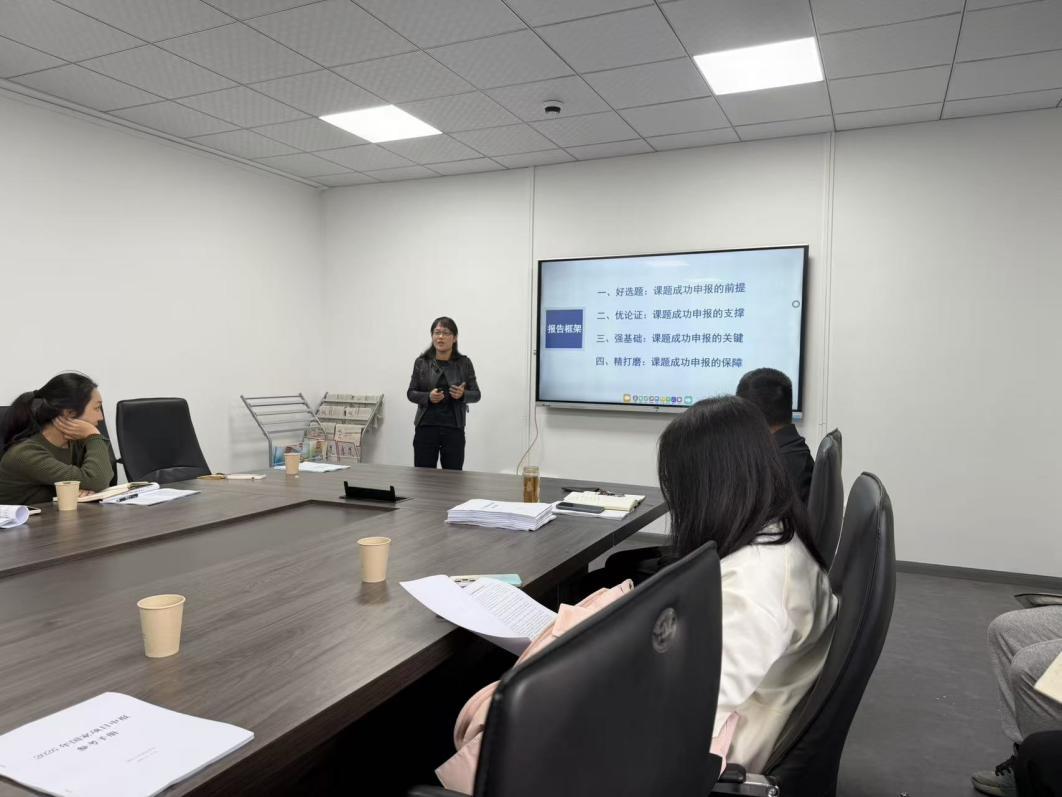 会上,史文文副院长首先传达了学校关于国家级课题申报工作各阶段时间表,其次分析了学院近几年课题申报情况,以及国家社科基金、教育部人文社科项目的立项数据,为教师提供参考。最后希望学院教师立即行动,聚焦个人研究方向,精心准备选题,全力打磨论证书,力争在新一轮课题申报中取得佳绩。