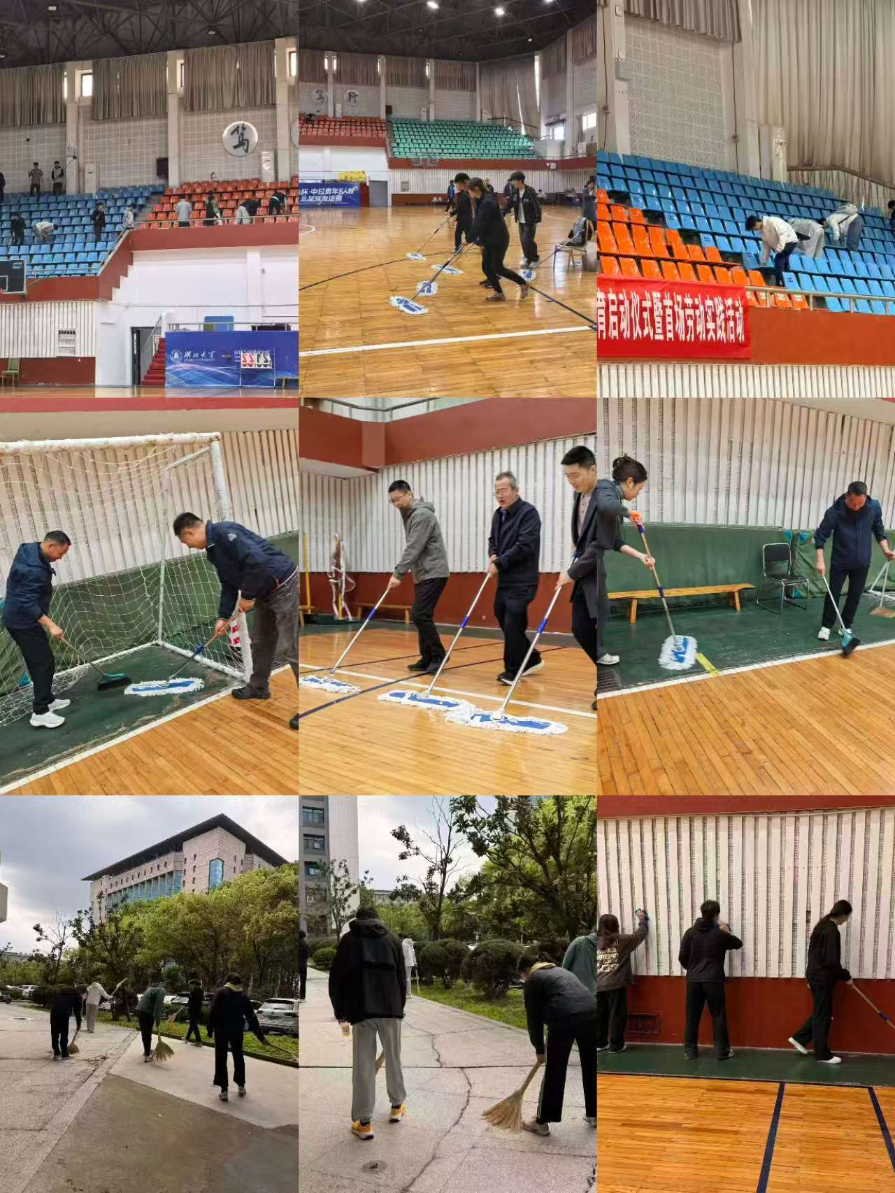 启动仪式结束后,全体参会人员开展了首场场馆劳动实践。大家分工协作、认真细致,对体育馆内场地、器材、公共区域等进行全面清洁整理,以实际行动践行劳动精神,展现出体育学院学子积极向上、乐于奉献的良好风貌。