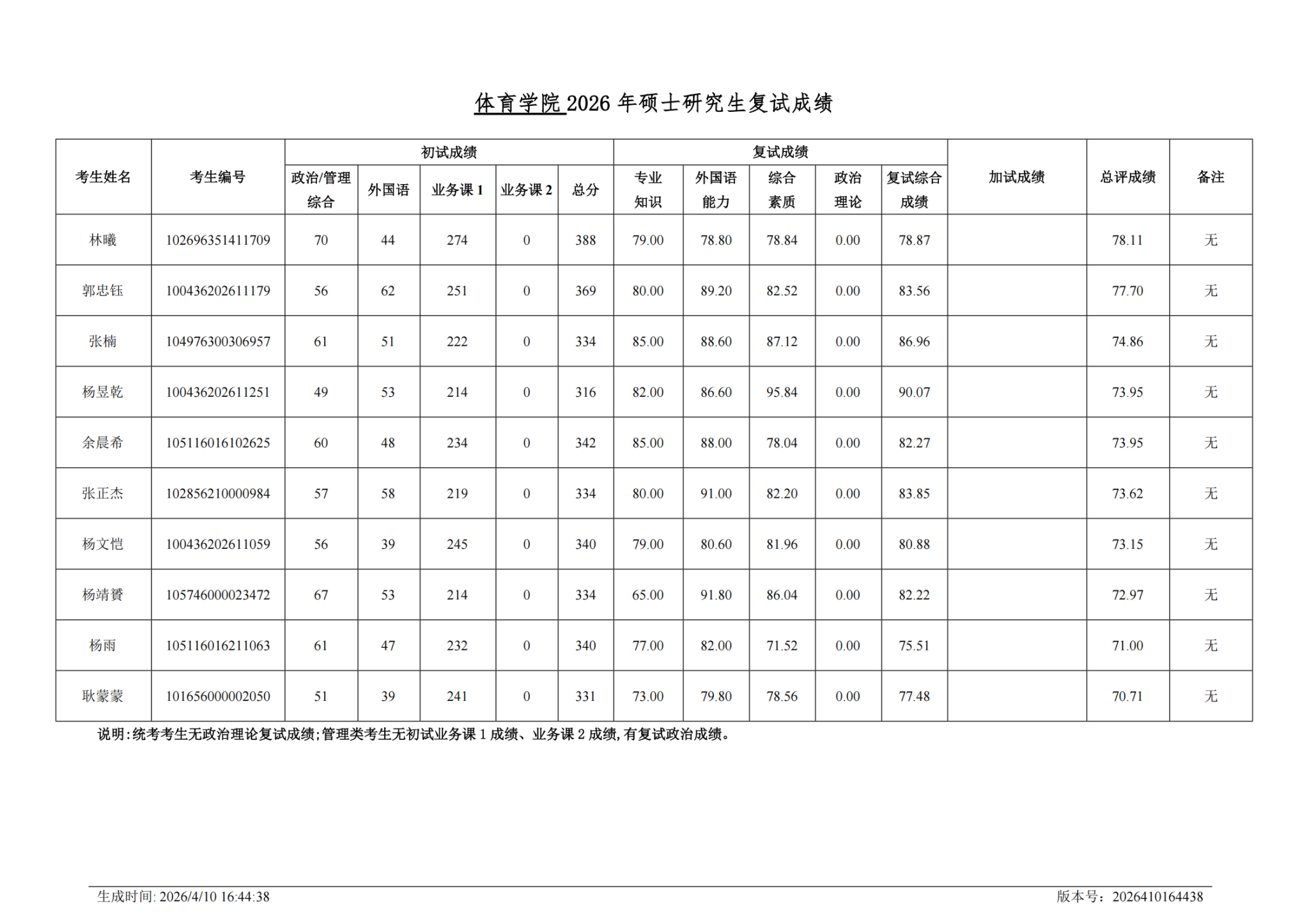 湖北大学体育学院2026年硕士研究生调剂复试考生名单